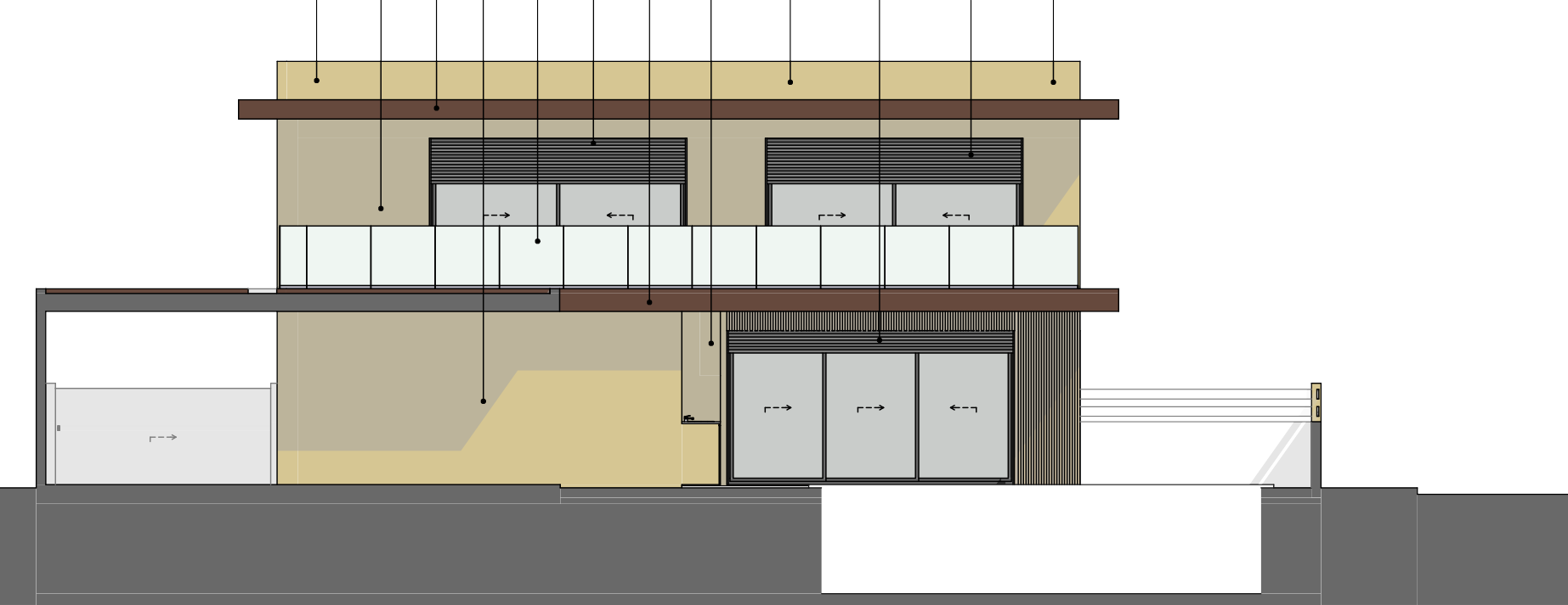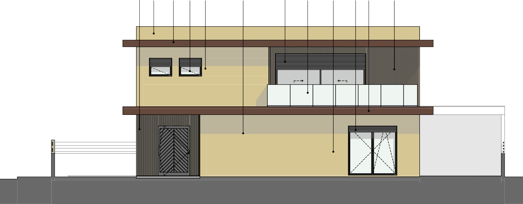 Os acabamentos exteriores propostos para as moradias seguem padrões modernos e funcionais, garantindo durabilidade, estética contemporânea e harmonia com o ambiente envolvente. Todos os materiais foram selecionados com base na sua qualidade e compatibilidade com as exigências técnicas do projeto.